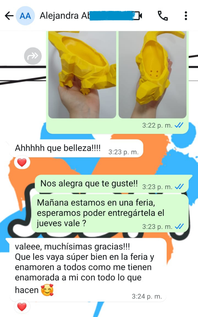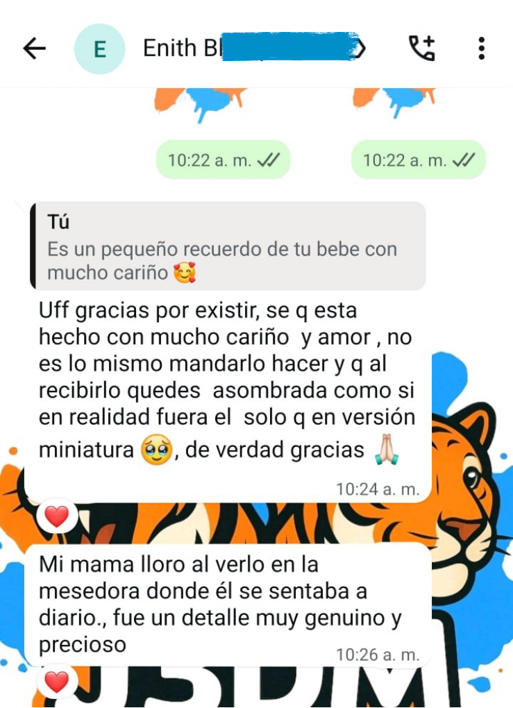 En esta sección, compartimos las experiencias y opiniones de quienes han recibido con entusiasmo nuestros productos de impresión 3D. Los testimonios son una fuente fundamental de motivación para nuestro equipo, ya que reflejan el impacto positivo de nuestro trabajo y nos impulsan a seguir innovando.